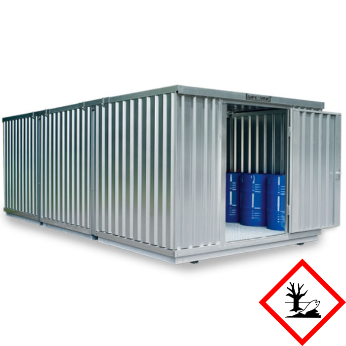 Alle miljøcontainere har spildbakke, vægge og tag lavet af stålplader.