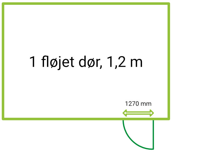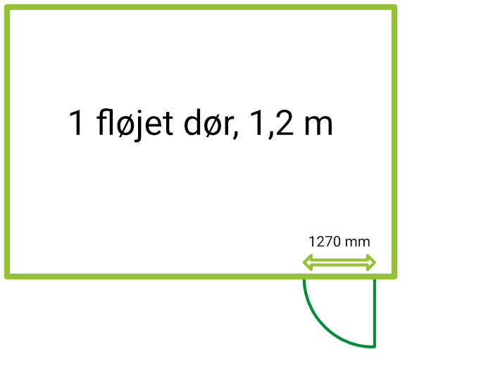 Enkeltfløjet dør, ca 1,2 meter bredde
