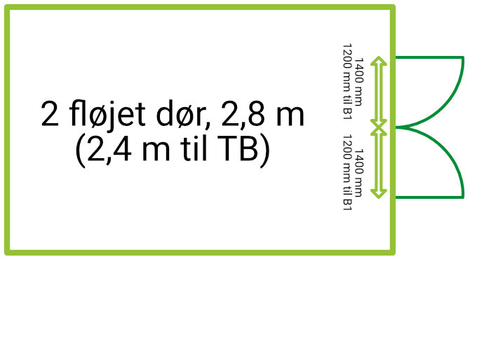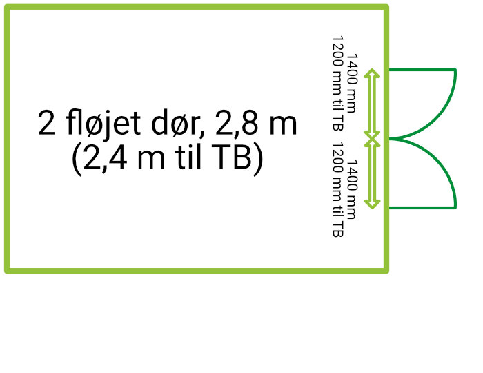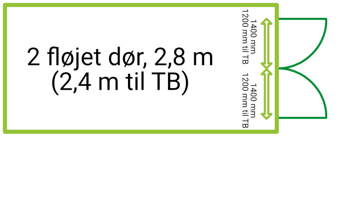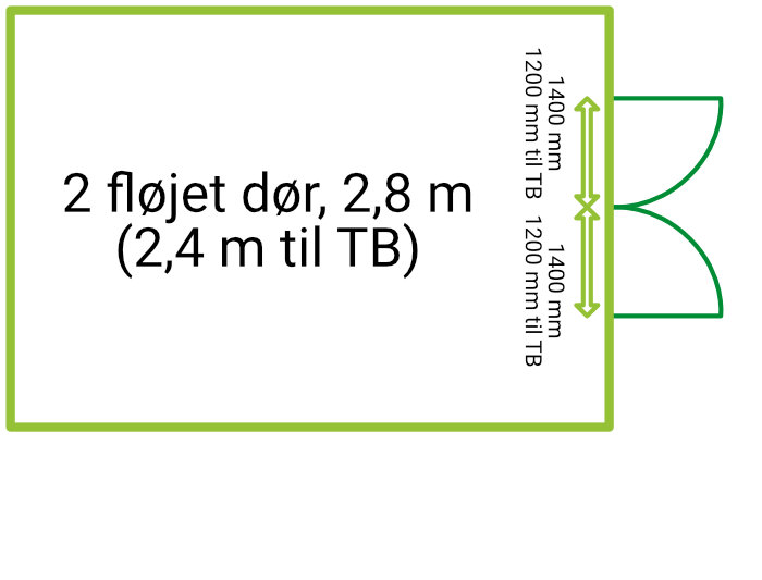 2 fløjet dør, ca 2,4 meter bredde