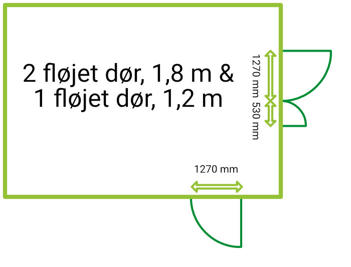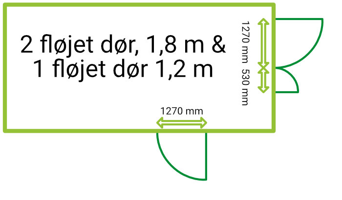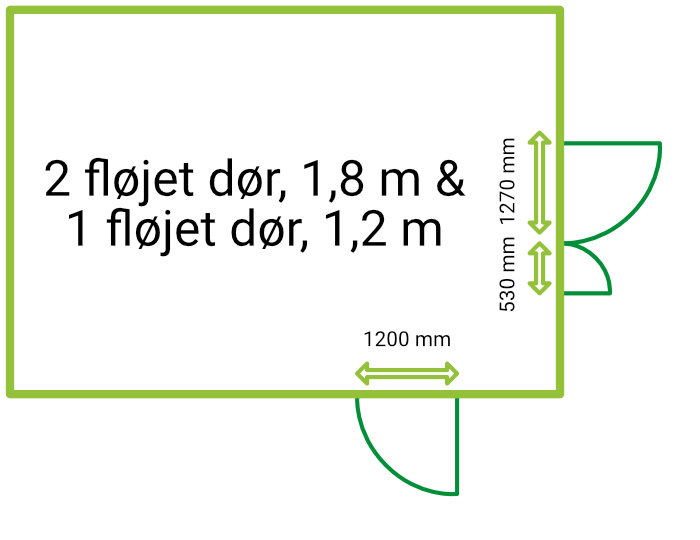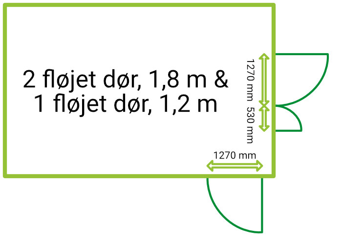 2 fløjet dør, ca 2,8 m bredde + 1 fløjet dør